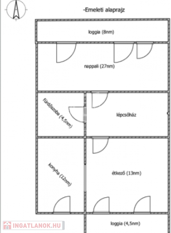 - nappali nagy ablakokkal, nyugati fekvésű loggia kapcsolattal,