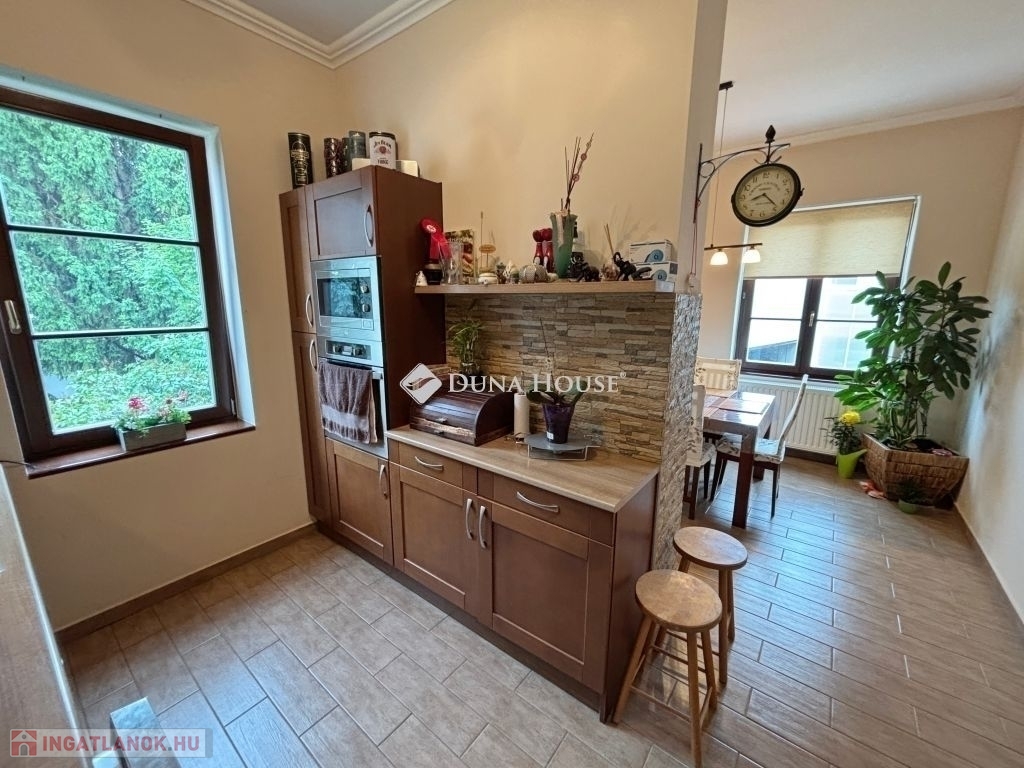 Az egyedi kialakítású lakás, a polgári stílust modern megjelenéssel ötvözi. Három oldalra (D-NY-É) tájolt, minden helyisége ablakos, napfényes ... A lakás tejleskörű műszaki és esztétikai felújítása 2008-ban készült el. A 143 m2-en előtér, hall, nappali, három hálószoba, konyha, étkező, fürdő-wc, közlekedő, és egy külön wc van kialakítva, ezeken kívül egy 9,5 m2 alapterületű részben fedett terasz, a madárcsicsergős belső kertre tájolva. Az ingatlan, méreteihez képest meglepően alacsony fenntartási költségekkel üzemel. Fűtését cirkó gázkazán biztosítja, radiátoros hőleadással, termosztát vezérléssel. Tartozik a lakáshoz egy 5 m2 alapterületű saját pince is. Az épület bejárata előtt parkolók vannak kialakítva.