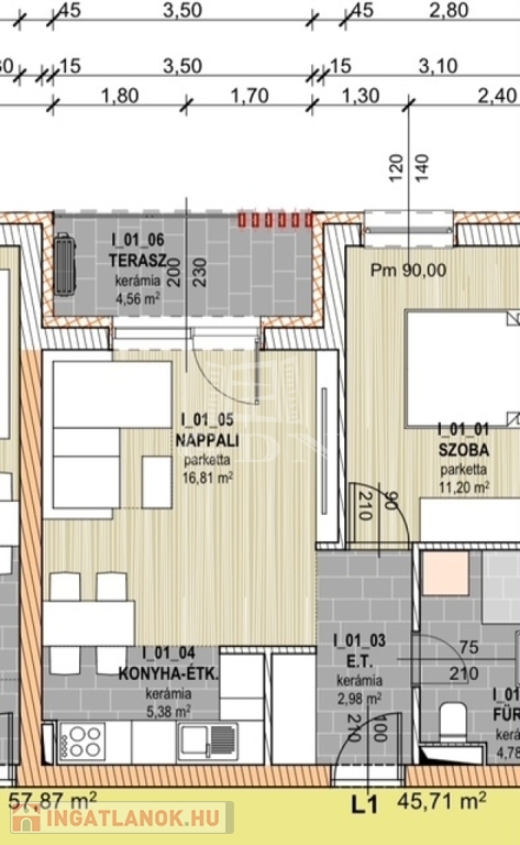 Az ingatlan alapterülete 41.15 m2, 5 m2 erkéllyel.