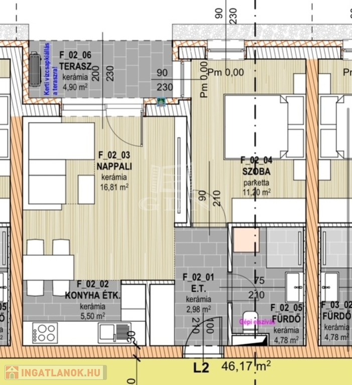 Az ingatlan alapterülete 41.27 m2, 4.9 m2 erkéllyel.
