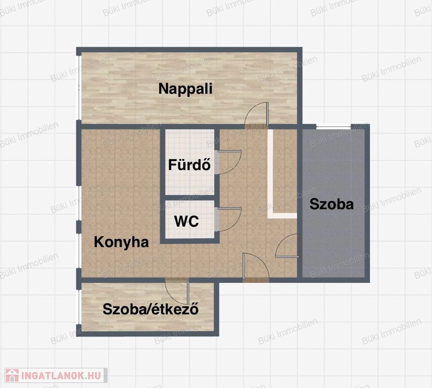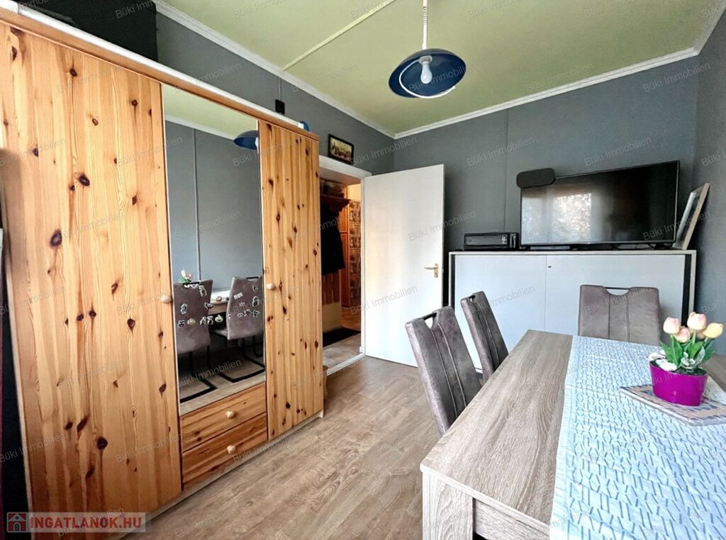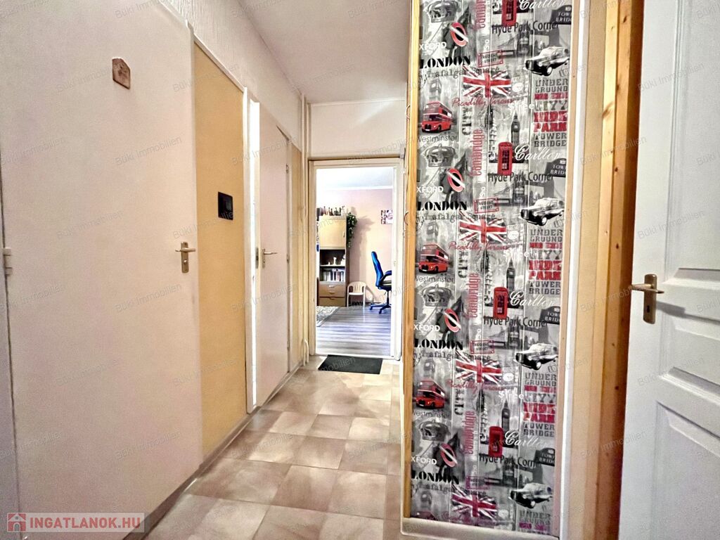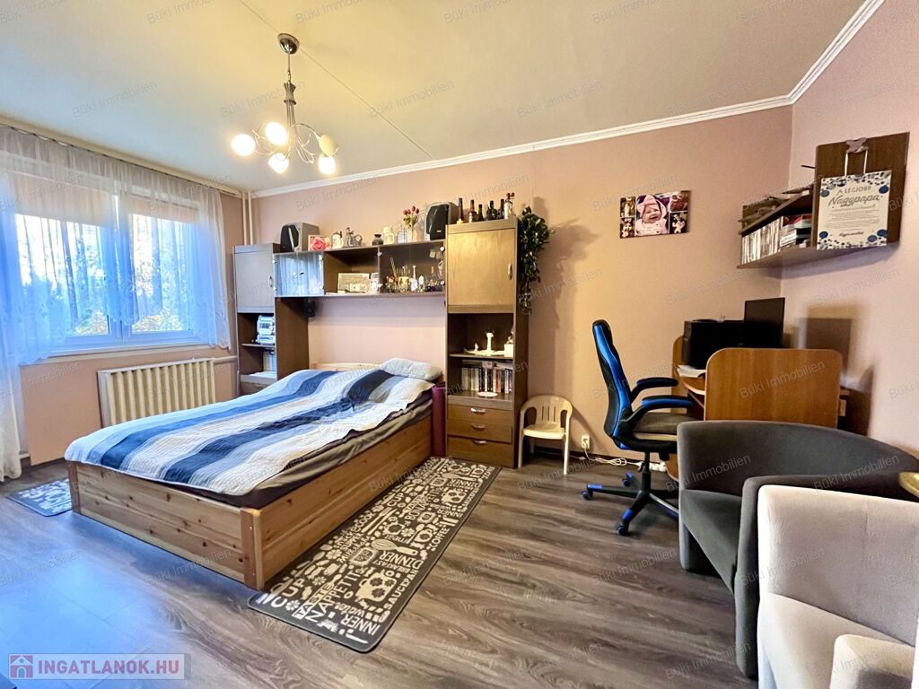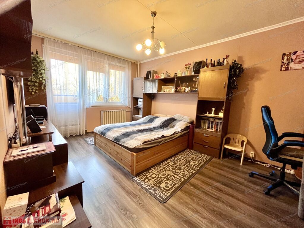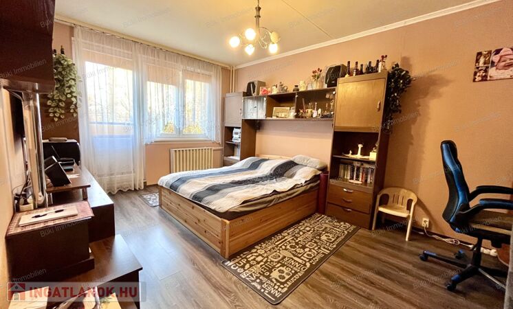 Belépve a világos, gardróbszekrény folyosóról nyílik minden harmonikusan, hiszen ez a praktikus elrendezés biztosítja, hogy minden holmi rendezett helyet kapjon – a téli kabáttól a nyári cipőkig –, így a mindennapi rend magától értetődő, miközben a három különálló szoba valódi privát szférát kínál minden lakónak: a gyerekeknek saját játékbirodalom, a szülőknek zavartalan pihenés, a vendégnek pedig intim, otthonos tér anélkül, hogy bárki zavarja a másikat. A laminált padló meleg, kellemes tapintású, könnyen tisztítható, így gyerekbarát és időtálló, a nagy ablakok pedig bőséges természetes fénnyel töltik meg a szobákat, ami energiatakarékos, hangulatjavító és egészséges is egyben.