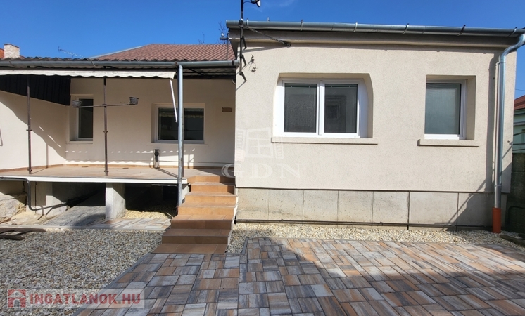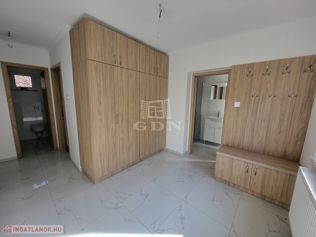 A felújítás során a tágas előszobában beépített szekrények kaptak helyet. Új konyhabútorral is felszerelték az ingatlant. A ház alatt pince található. Nagy, fedett terasszal kapcsolódik a ingatlan a kerthez, amelynek egy része, a lakáshoz van rendelve. Rendkívül jó elhelyezkedésének köszönhetően befektetésnek is kiváló.