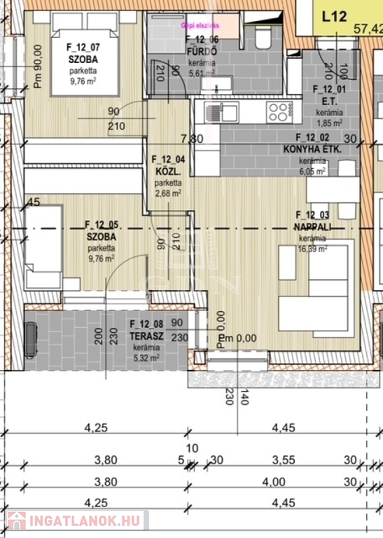 Az ingatlan alapterülete 54.74 m2, 5 m2 erkéllyel.