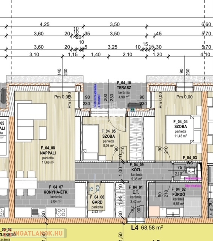 Az ingatlan alapterülete 58.33 m2, 4.9 m2 erkéllyel.