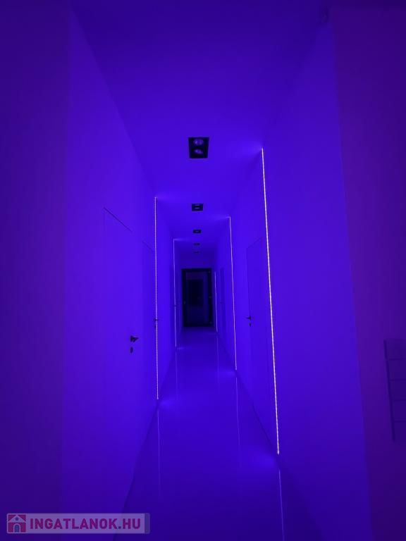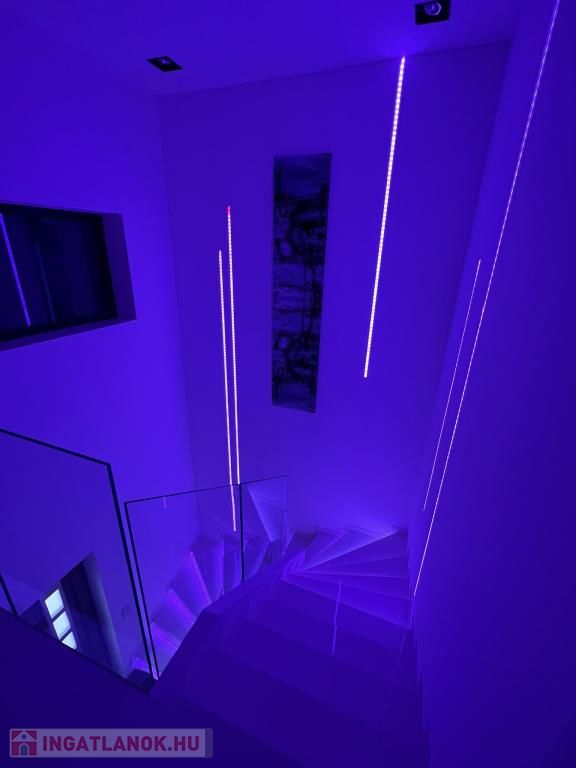 -A lépcsőház egyedi kialakítású , olasz fiandre kőporcelán burkolással, ledes megvilágítással.