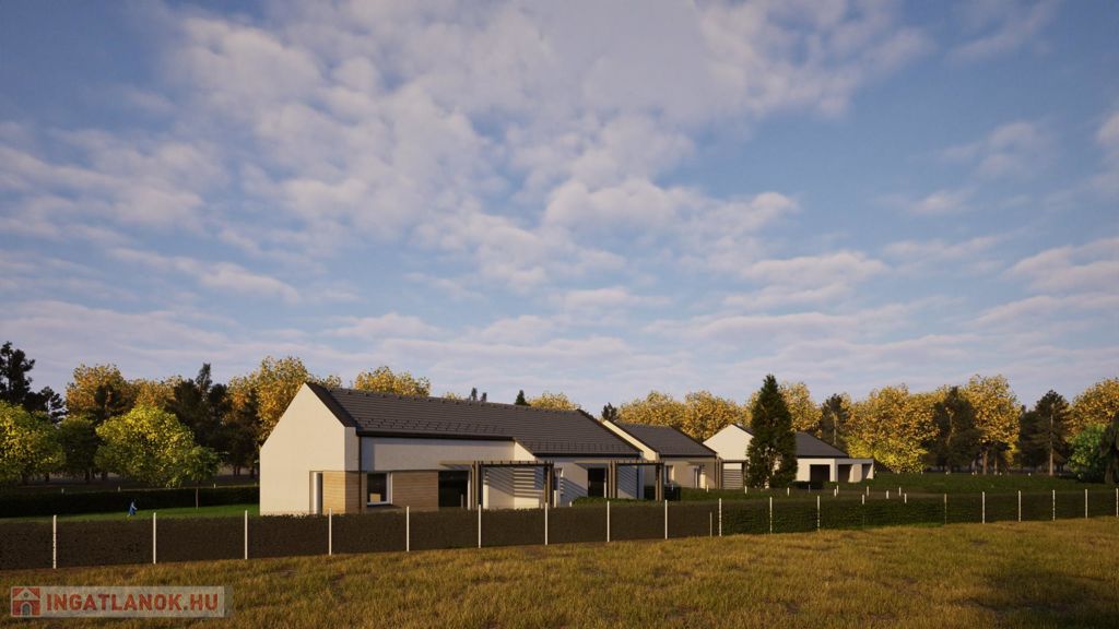 A most kialakuló lakóparkban 2 telken egy 4 egységből és egy 2 egységből álló (összesen 6 db lakás) összeépített sorházi lakások kerülnek kialakításra. (CSOK + HITELRE alkalmas)