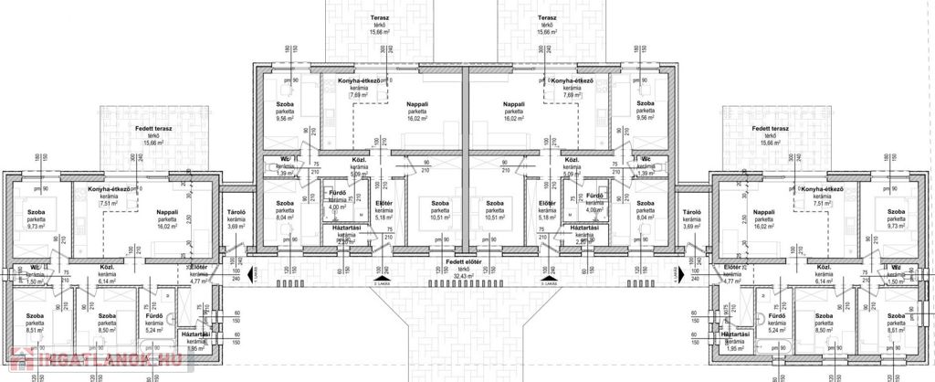 -3-as lakás: 69,23nm + 15,66nm terasz (nappali + 3 hálószoba)+362 nm saját kertkapcsolat