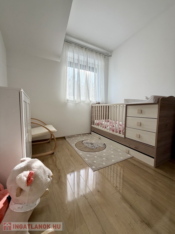 A 77 m²-es lakótér átgondolt, családbarát elrendezésű. Három hálószoba biztosítja a privát tereket a szülőknek és a gyerekeknek, míg a két fürdőszoba a mindennapokat teszi gördülékennyé. A világos, modern élettérhez teljesen gépesített, beépített konyha kapcsolódik, így az ingatlan nem igényel további jelentős beruházást.