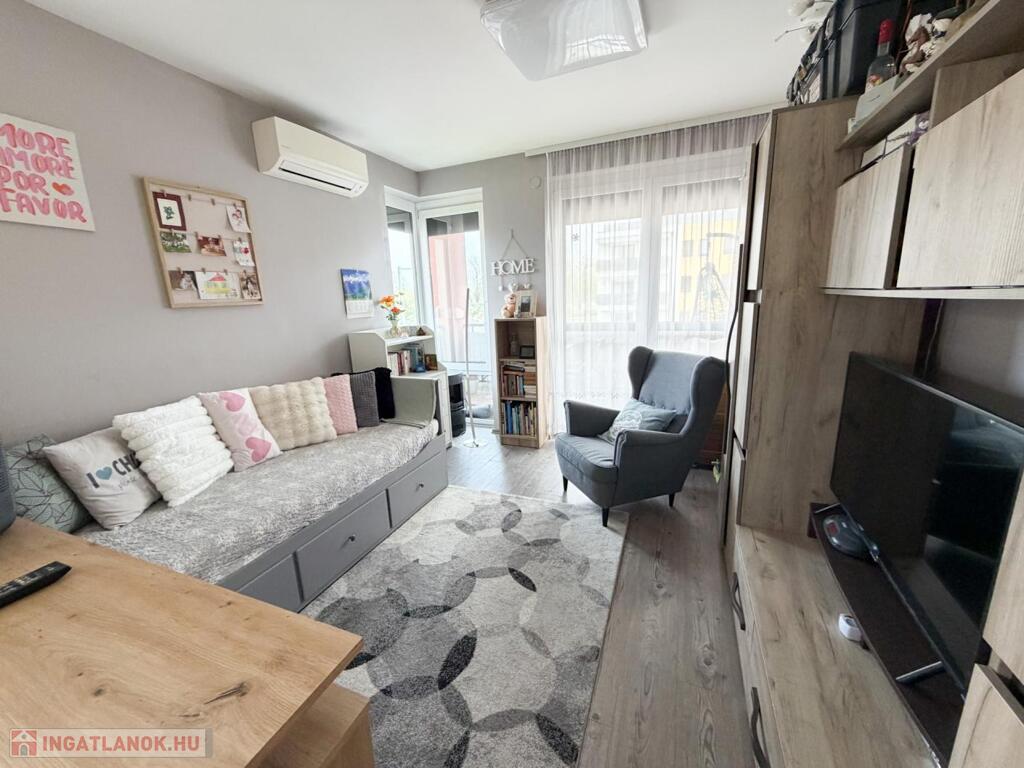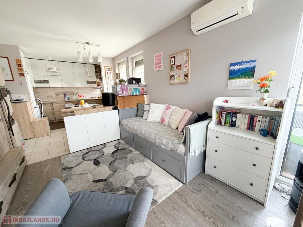 A 2018-ban épült ingatlan egy letisztult, korszerű társasházban található, amely minden igényt kielégít a mai kor elvárásainak megfelelően. A lakás praktikus elrendezésű: két külön nyíló szoba, valamint egy tágas, világos amerikai konyhás nappali biztosítja a kényelmes életteret akár családok, akár párok számára.