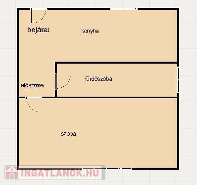 - 1 szoba, 18,5 m2.. 1 konyha 10 m2, 1 fürdőszoba 3,5 m2