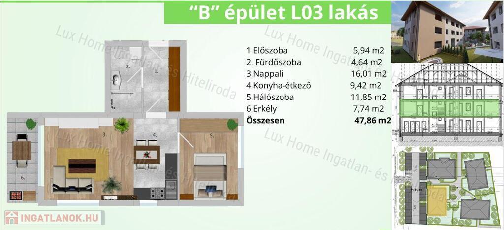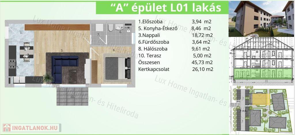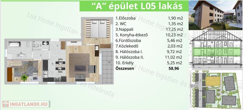 DL01: 51, 58 m2 + 180 m2 kert: 59.317.000 Ft