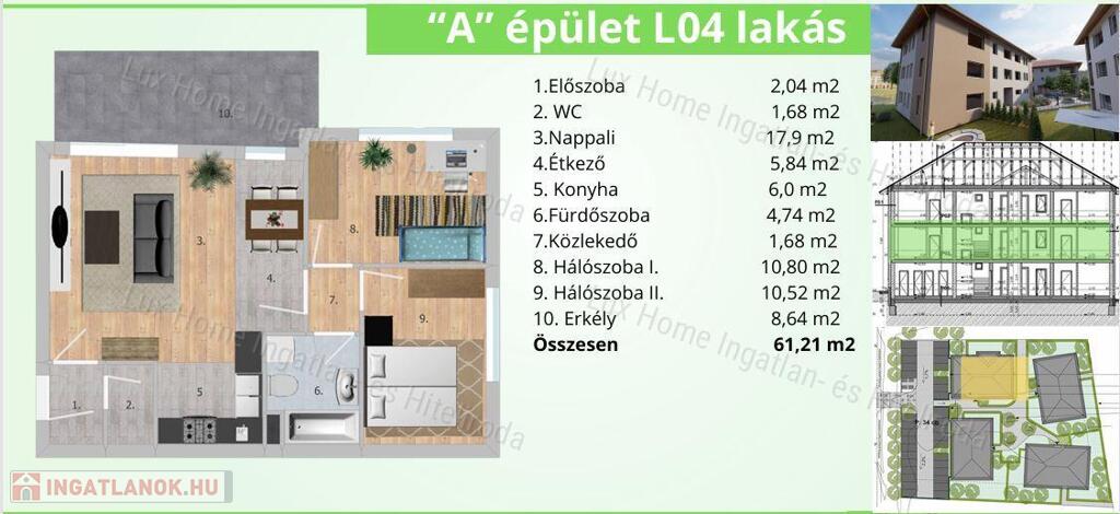 CL06: 2. emelet, 64,07 m2+ 7m2 erkély, 56.977.800 Ft