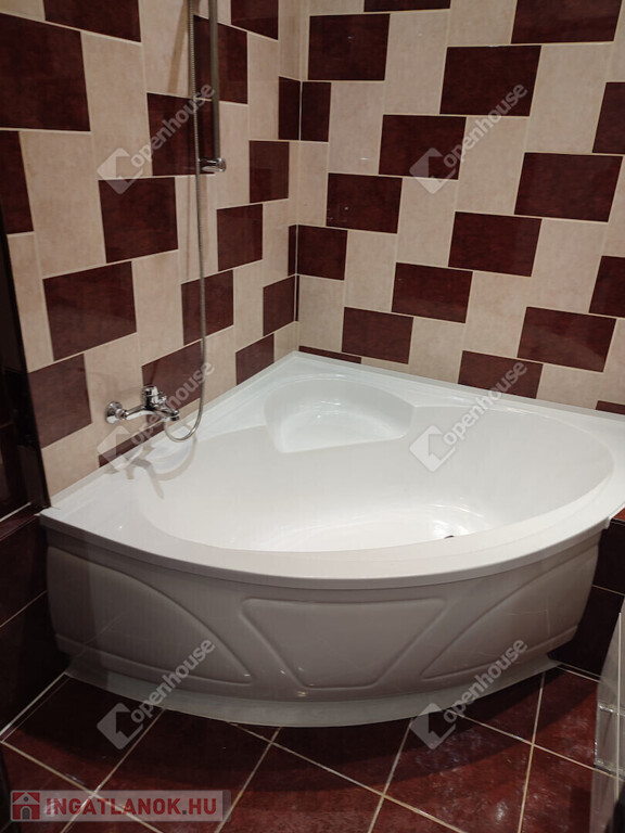 -A fürdőszoba sarokkáddal szerelt, a toalett külön helyiségben található.
