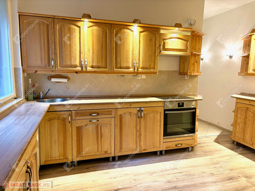 - méretre tervezett, sok pakolási lehetőséget nyújtó konyhabútor, beépített sütővel és tűzhellyel