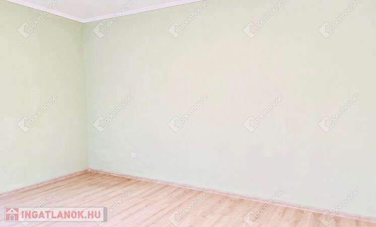 - a konyha, valamint a szobák közül 2 laminált padlóval, a fürdőszoba, a közlekedő és az egyik szoba járólappal burkolt