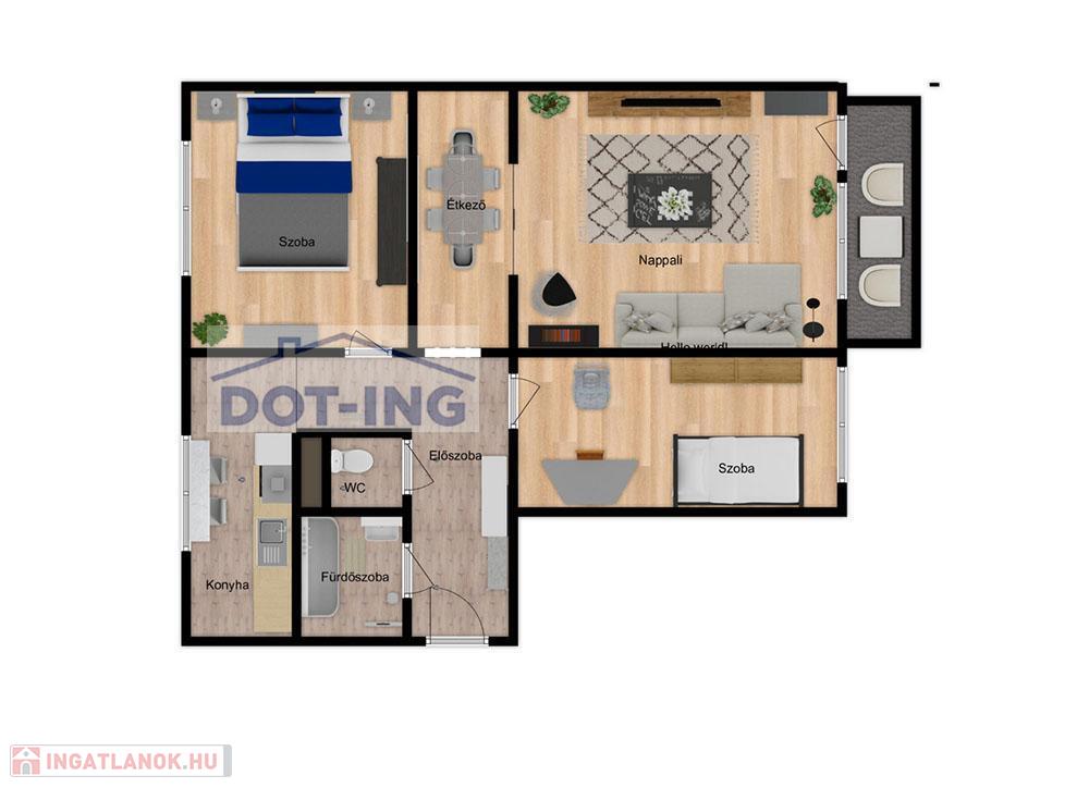 A nappaliból nyíló nagy erkélynek köszönhetően mondhatjuk, hogy ebből az elrendezésből kevés található a városban. Az ingatlan tehermentes.