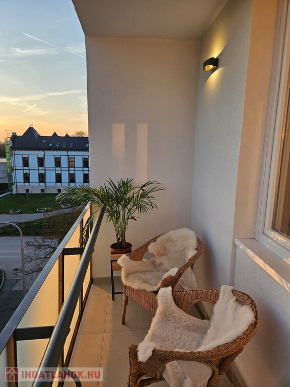 A lakáshoz tartozik egy közel 5 m²-es erkély és egy kb. 3 m²-es saját tároló is.