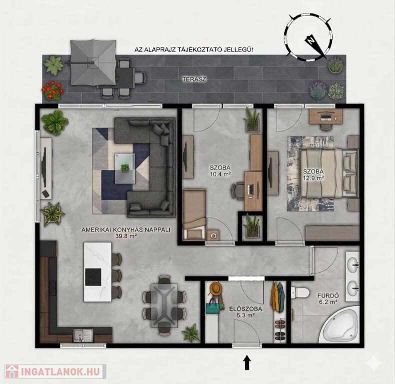 AZ ELSŐ LAKÁSVÁSÁRLÓKNAK: Aki nem akar felújítással bajlódni, és egy modern, TRENDI otthonba akar költözni, ahol a baráti összejöveteleknek a HATALMAS TERASZ adja a díszletet.