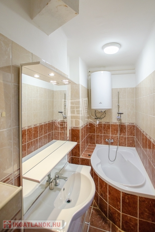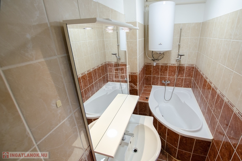 - a tágas, francia erkélyes szobán túl találunk a lakásban egy konyhát, étkezőt, sarkokkádas fürdőszobát (egyben a WC-vel), valamint egy közlekedőt