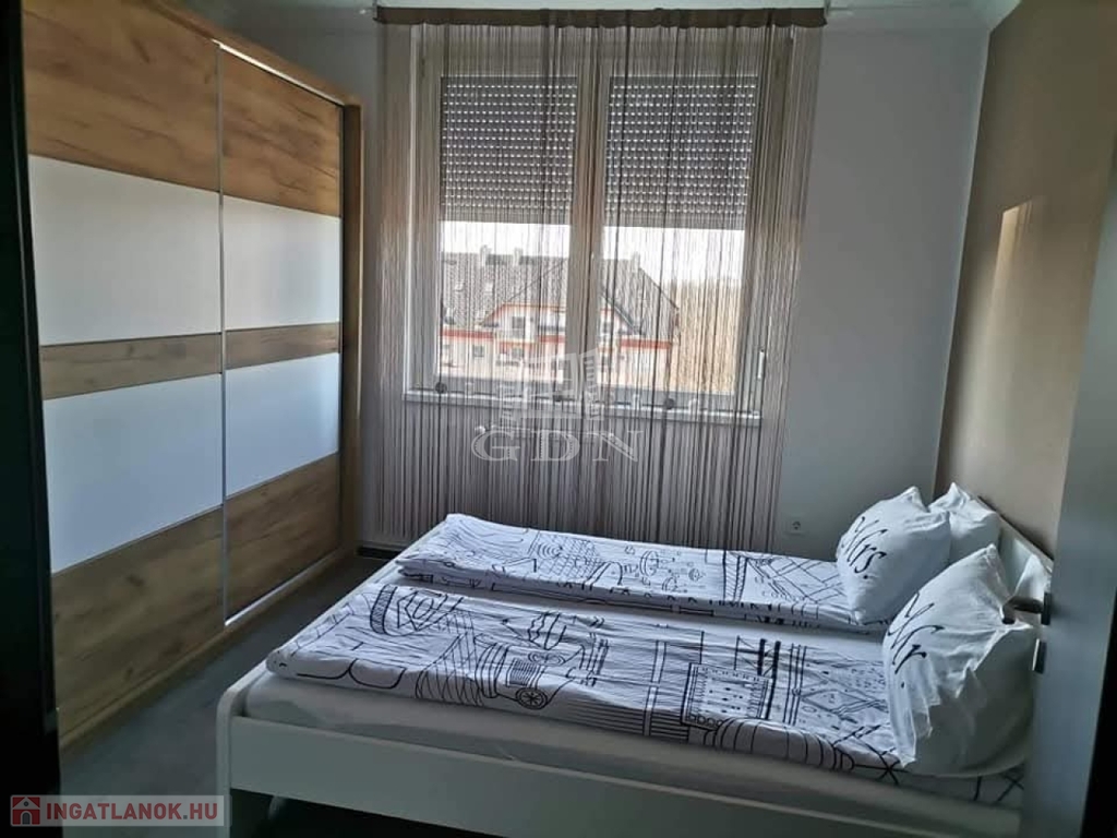 A lakás 4 szintes társas-ház negyedik emeletén helyezkedik el. Elosztása: előtér 6,06 m2, nappali 22,25 m2, szoba 12,00 m2, szoba 7,90 m2, konyha 5,80 m2, fürdőszoba 5,47 m2, külön toalett 0,76 m2, gardrób 1,25 m2, az ingatlanhoz a földszinten 4 nm zárható tároló is tartozik