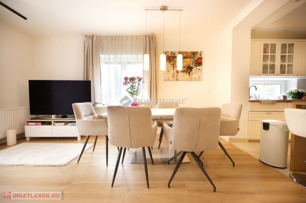 KERTKAPCSOLATOS LAKÁS ELADÓ TÖRÖKBÁLINT KÖZPONTI, MÉGIS CSENDES RÉSZÉNTörökbálint egyik kedvelt, mégis nyugodt utcájában kínálunk megvételre egy tehermentes, modern kialakítású lakást.Az ingatlan ideális választás családok számára:tágas amerikai konyhás nappali étkezővel, 2 kényelmes hálószobával, tágas gardróbbal, külön nyíló WC-vel, valamint fürdőszobával rendelkezik.A kellemes hőérzetről és a gazdaságos működésről ARISTON kondenzációs kazán gondoskodik, amely a fűtést és a melegvíz-ellátást biztosítja. A nagy üvegfelületeknek és a kedvező tájolásnak köszönhetően a lakás rendkívül világos és barátságos hangulatú.A 32 m²-es, kertkapcsolatos terasz közvetlenül kapcsolódik a kizárólagos használatú, kb. 150 m²-es kerthez, amely tökéletes helyszínt nyújt pihenésre, családi és baráti összejövetelekre.A lakáshoz tartozik egy felszíni gépkocsibeálló is.További előnyök:-nincs közös költség-minden közmű egyedi mérőórával felszerelt-klíma minden helyiségben-elektromos redőnyök-padlófűtés A közlekedés kiváló: a buszmegálló az utca végén található, Budapest pedig az autópályán keresztül mindössze 15 perc alatt elérhető.Ez az ingatlan tökéletes választás mindazok számára, akik egy modern, kényelmes és azonnal költözhető otthont keresnek.