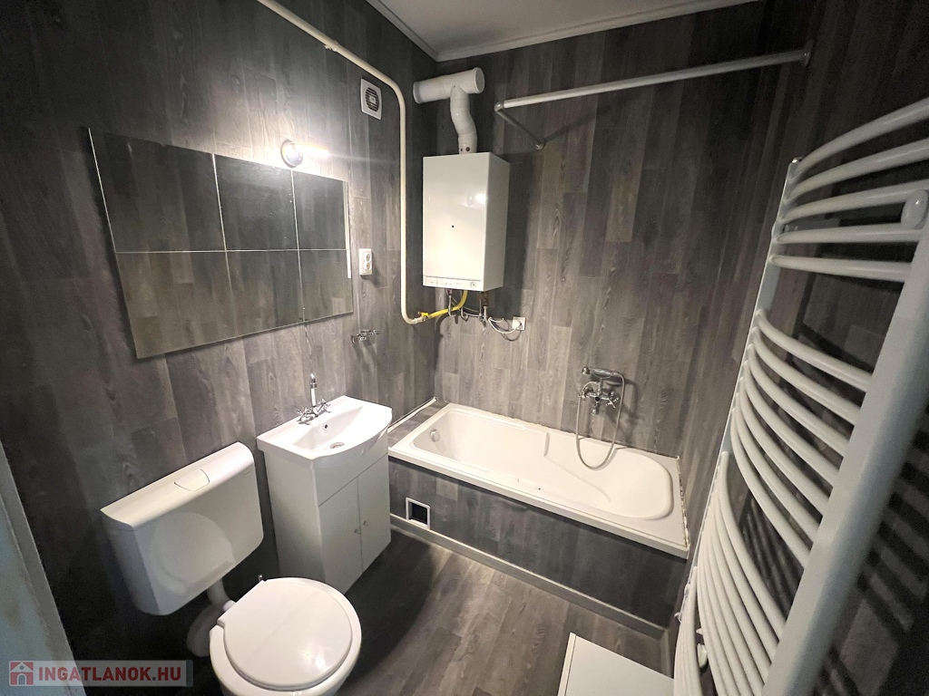 - A fürdőkádas fürdőszoba vinyl burkolatot kapott.