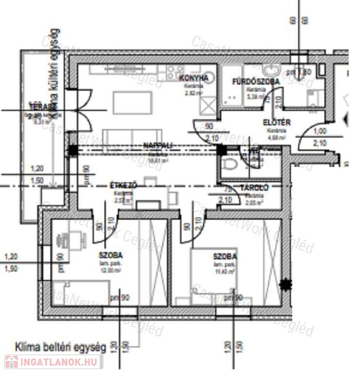 Az ingatlan műszaki tervei alapján hirdetjük meg. Kérjük, vegye figyelembe, hogy a használatbavételi engedély kiadását követően kisebb m²-eltérések előfordulhatnak.