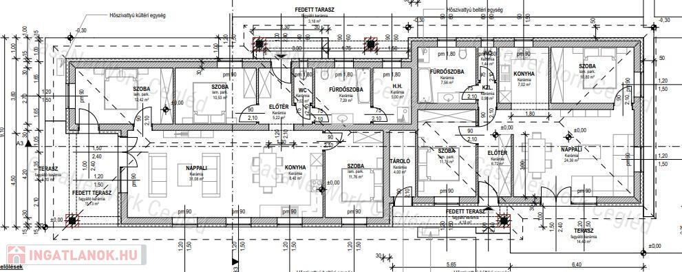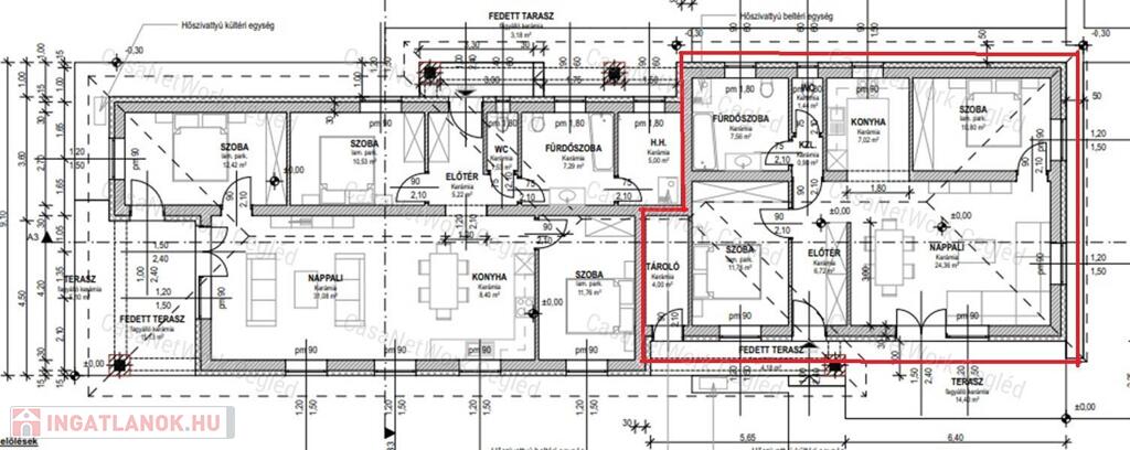 A hirdetett lakás: A. lakás: fűtött lakótér: 70,56 nm + 25,68 nm terasz