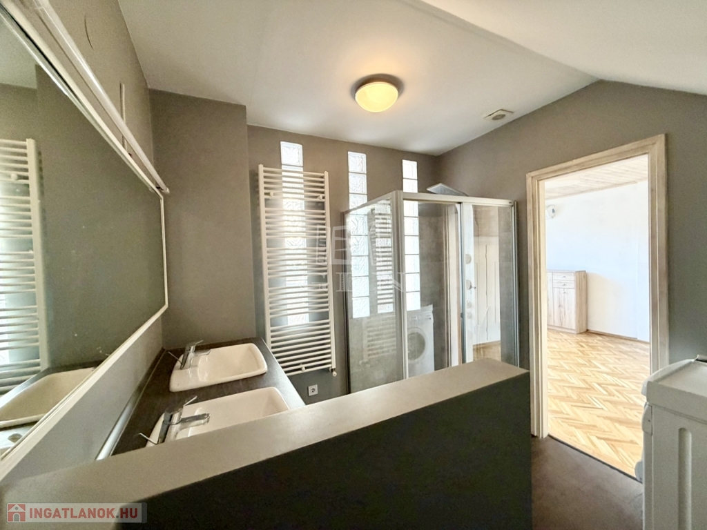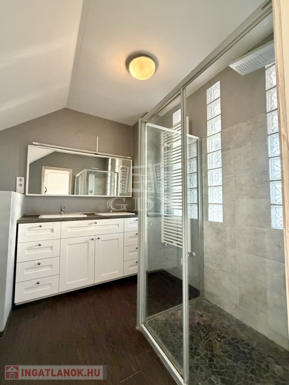 • Fürdőszobák: 2019-ben teljes felújításkor, vízvezetékek cseréje is megtörtént; alsó szinten kádas fürdő, a felső szinten dupla mosdóval, WC-vel, kényelmes zuhany fülkével.