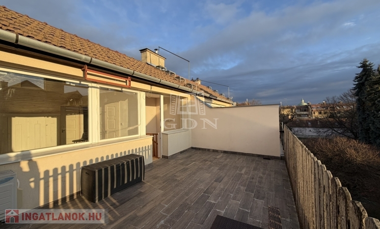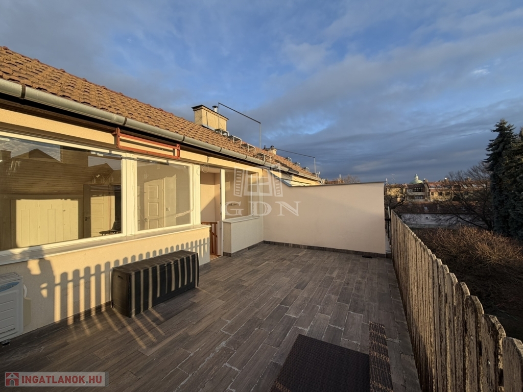 A lakás különlegessége fenti kis előtérből nyíló 26 m2-es, DNy-i tájolású, rendkívüli kilátást biztosító tetőterasz, amelyet tetőtér megnyitásával tudtak megvalósítani.