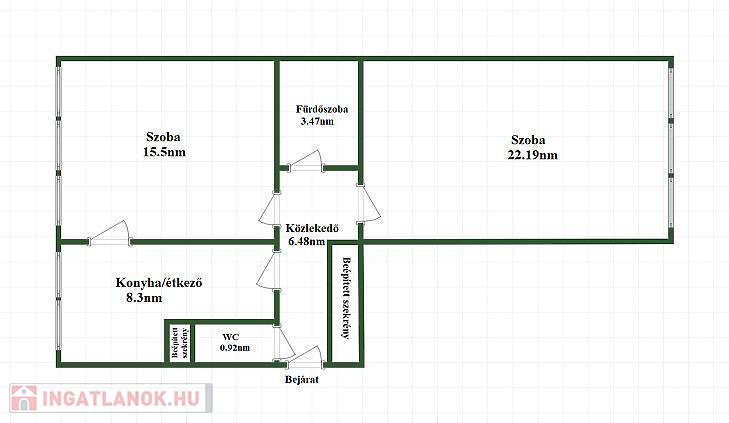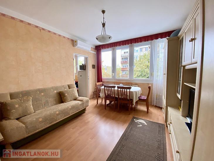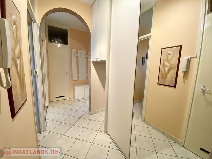 A lakás praktikus elosztású: egy kényelmes előszobából nyílik két külön nyíló szoba, egy világos konyha étkezőrésszel, egy fürdőszoba és egy különálló WC. Az ingatlan keleti és nyugati tájolásának köszönhetően a természetes fény egész nap körbejárja a lakást – délelőtt a nappali, délután a konyha és a hálószoba úszik napfényben, így a terek mindig világosak és tágasak.