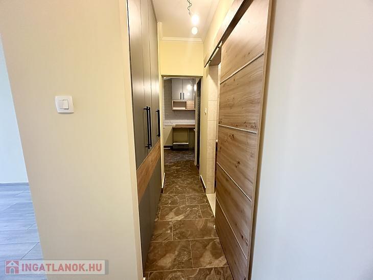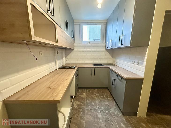 Az ingatlan elosztása rendkívül praktikus és jól átgondolt: előszoba, két világos szoba, közlekedő, teljesen felújított fürdőszoba, külön WC, konyha étkezőrésszel, valamint egy 4 nm-es erkély, amely ideális helyszíne lehet a reggeli kávézásnak vagy a pihenésnek. A lakásban új, egyedileg tervezett konyhabútor, valamint beépített szekrények találhatók, amelyek jelentős tárolókapacitást biztosítanak, és a vételár részét képezik.