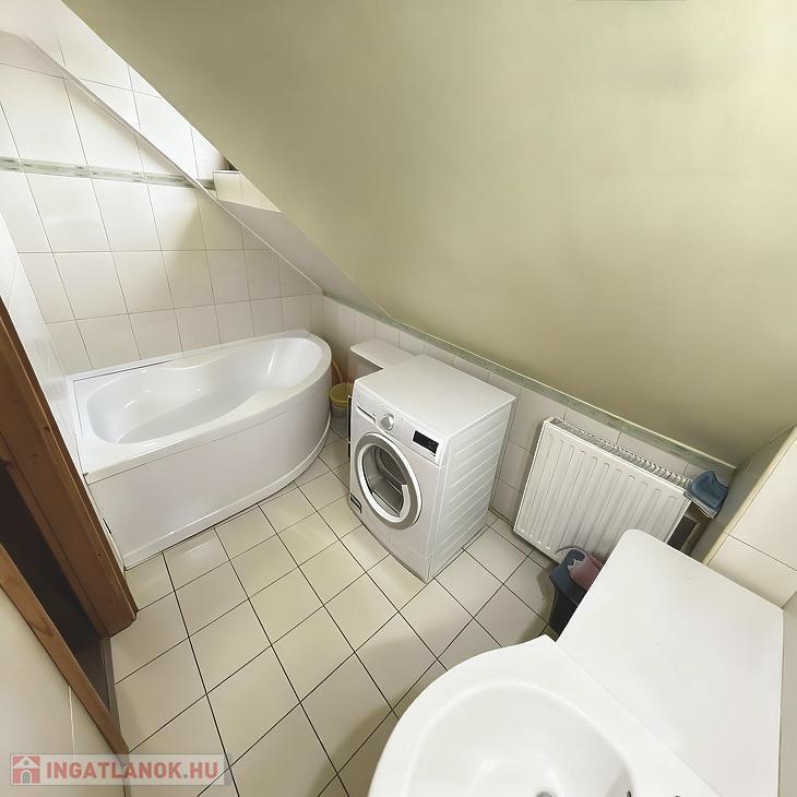 Az emeletre érve egy külön gardróbszoba biztosít kényelmes tárolási lehetőséget, továbbá két külön nyíló szoba kapott helyet, amelyek kiválóan alkalmasak hálónak, gyerekszobának vagy dolgozónak. A fürdőszoba WC-vel szintén az emeleten található. A lakás minden helyiségében új, dupla üvegű, redőnnyel ellátott nyílászárók gondoskodnak a megfelelő szigetelésről és a kellemes hőérzetről.