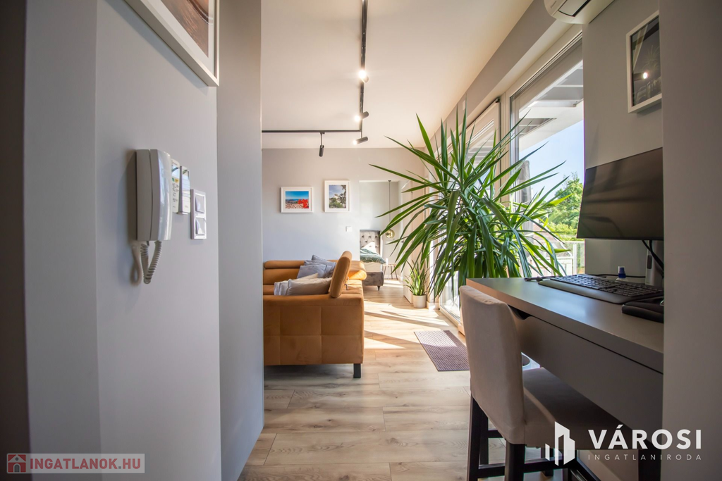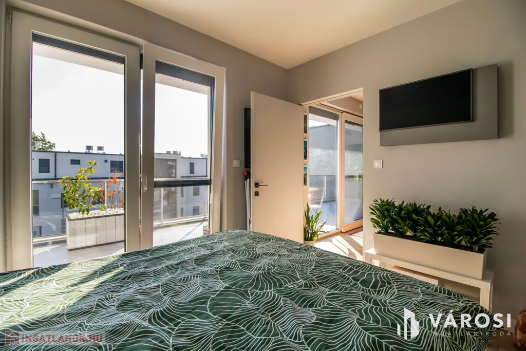 Velence központhoz közeli, de mégis zöldövezeti részén épült pár éve ez a lakópark, amelynek a legfelső szintjén eladó ez a prémium anyagokkal kivitelezett, luxus penthouse lakása. Mindkét oldalról hatalmas terasz fogja közre a nappali + 1 hálószobás lakást, amely a jelenlegi teljes bútorzatával és berendezéseivel együtt keresi igényes gazdáját, aki különleges ingatlant keres, egy csendes helyen.