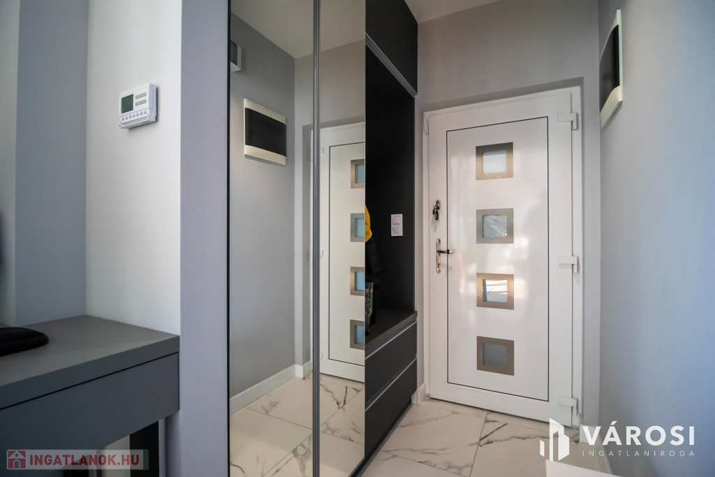 A konyhabútor is méretre készült és a legkorszerűbb gépekkel van felszerelve, amik természetesen itt maradnak szintén. A nappaliban igényes ülőgarnitúra csábít a pihenésre, tévézésre.