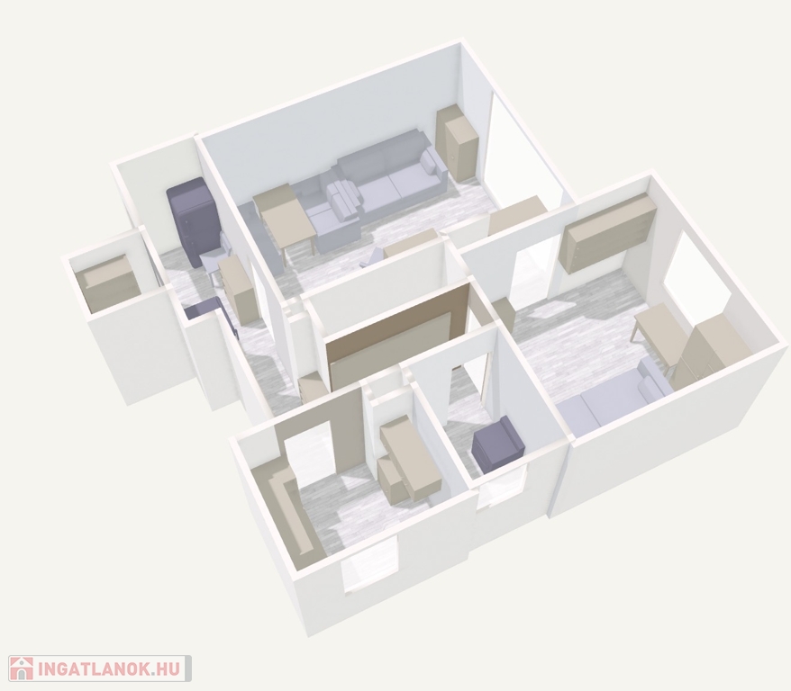 A lakás praktikus, jól alakítható, de jelenlegi elrendezése is kiváló, két külön nyíló szobával, ami remek alapot ad egy modern, élhető tér kialakításához.
