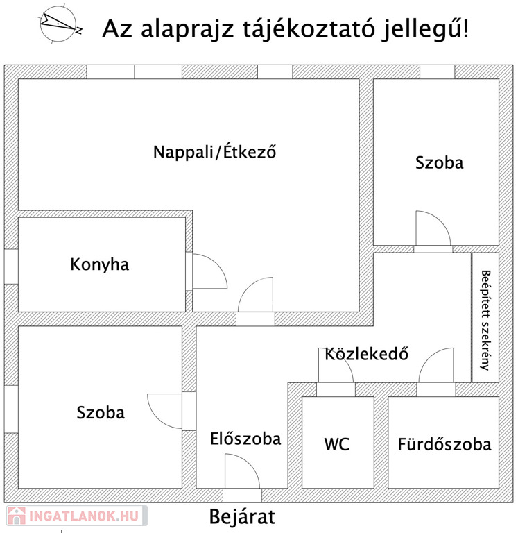 - 1 egész szobából, 2 félszobából, előszobából, konyhából, fürdőszobából, különálló és WC-ből áll!