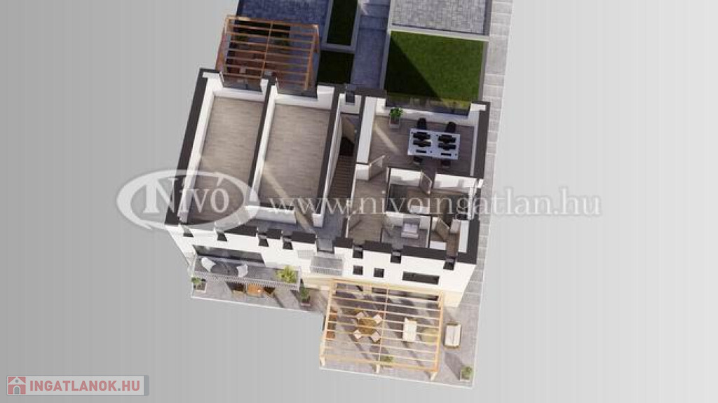 Az exkluzív kivitelezésű, három szinteltolásos társasházban (ikerház jellegű) 2 db belső kétszintes (egy 135,62 m2 és egy 97,88 m2) saját kertkapcsolatos lakás