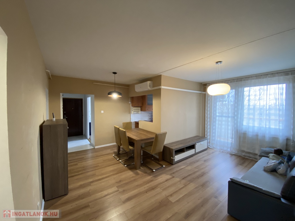 A lakás 68 m2 alapterületű, 1+3 szobás elrendezésű, melyhez tartozik egy 4 m2-es Bakony panorámás erkély fagyálló járólap burkolattal. Az eredeti beépített szekrények helyén modern gardróbszekrény és nyitott spejz polcrendszer került kialakításra. Az észak-déli tájolásnak köszönhetően nyáron nem tűz be a nap, télen viszont világos tereket kölcsönöz a lakásnak. A lakás kétrétegű műanyag nyílászárókkal és Hisec biztonsági bejárati ajtóval felszerelt, a szobákban jó minőségű, 7mm-es laminált parketta került lerakásra. A lépcsőház tiszta, rendezett, a lakóközösség nagyon kedves, segítőkész és csendes.