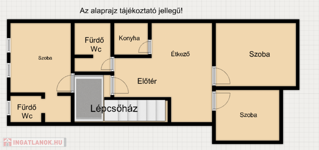 Az első lakrészben helyet kapott két szoba, egy étkező, egy fürdőszoba WC-vel, valamint egy előtér, amely már belépéskor otthonos hangulatot teremt.