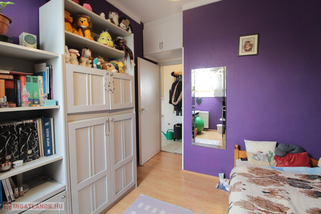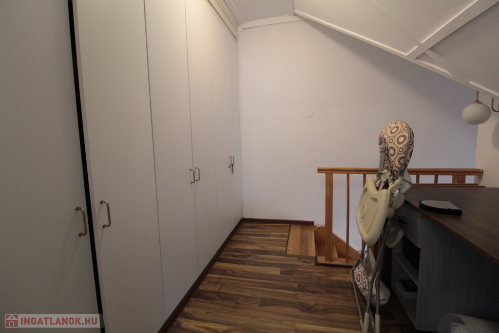 Praktikus beépített szekrények találhatóak az alsó és a felső szinten is, a lépcsőházban pedig egy 2 m²-es kamra is a lakáshoz tartozik.