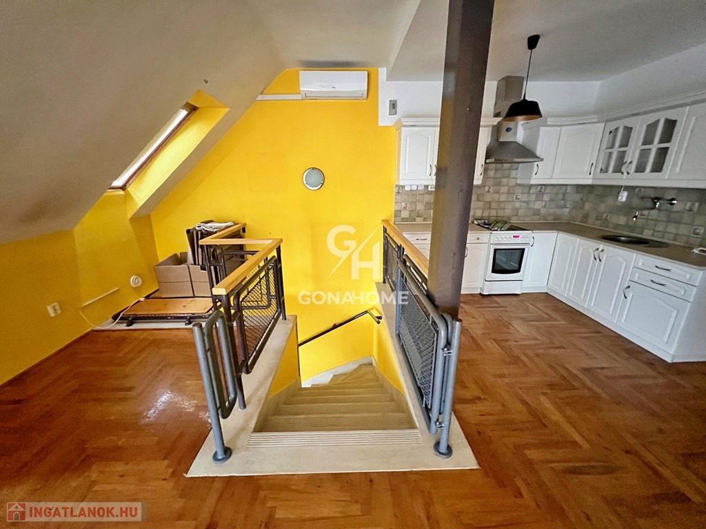 - A 21 m2-es, felújított manzárdszobába padláslépcsőn lehet feljutni, ahová víz és villany is bevezetésre került!