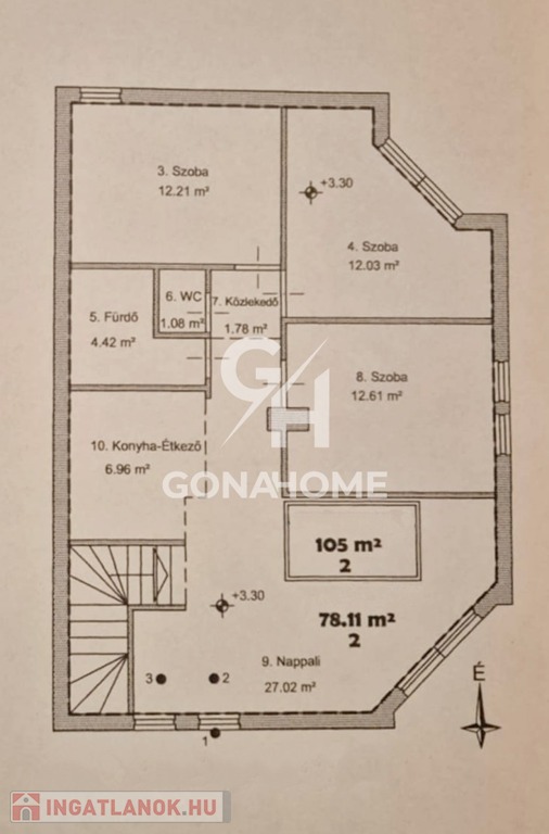 A lakótér hasznos alapterülete összesen: 78.11 m2