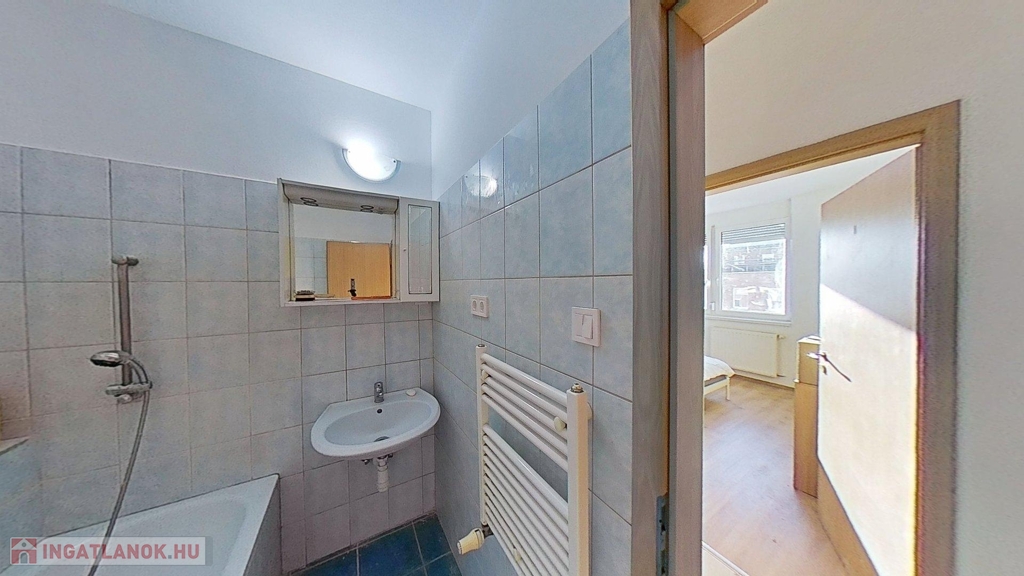 A fürdő és az illemhelyiség külön térben helyezkedik el.