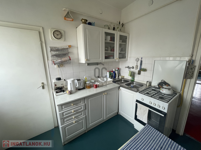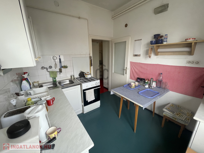 -a konyha tágas, ablakkal ellátott, innen nyílik egy kamra is,