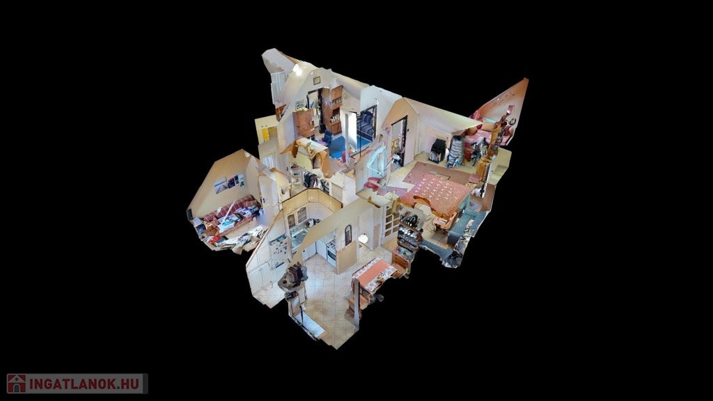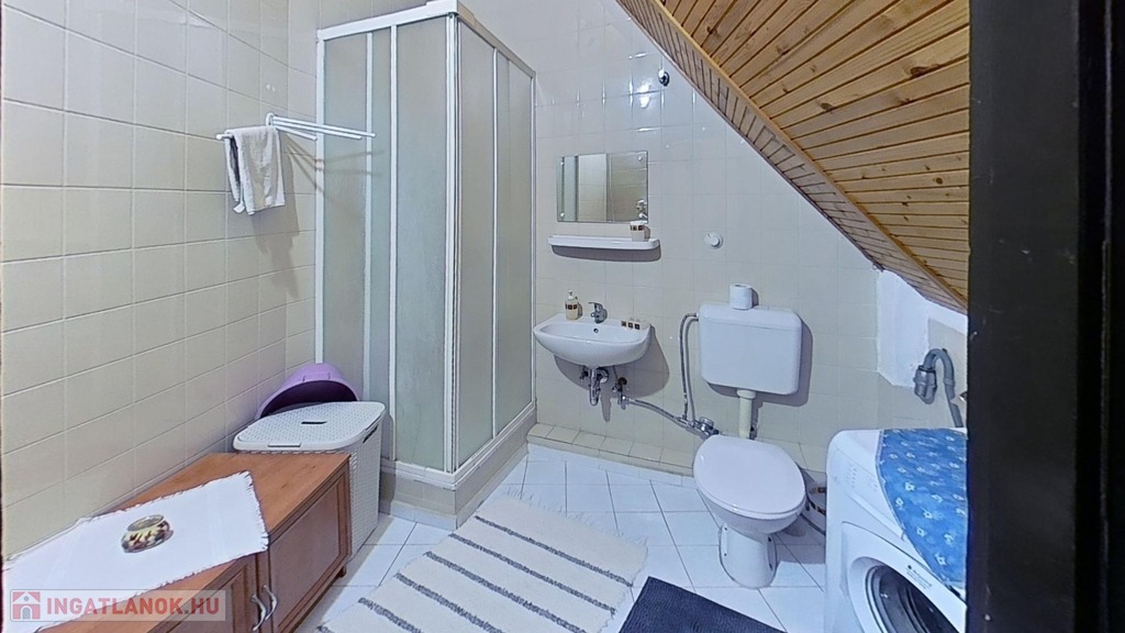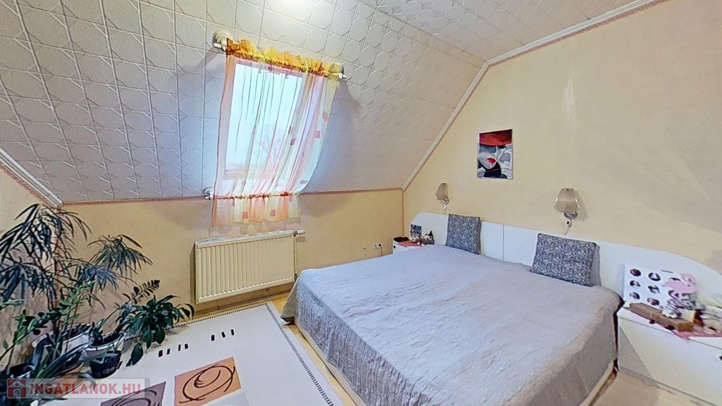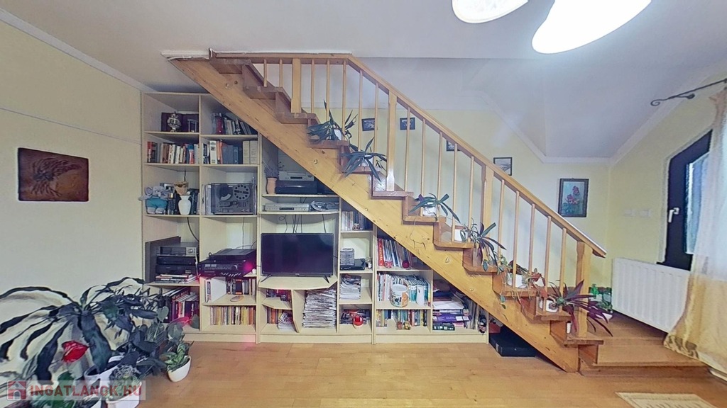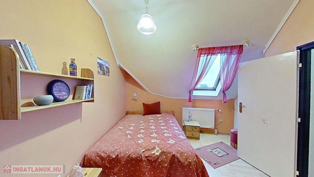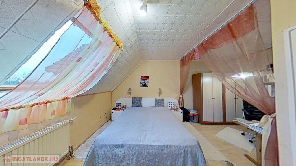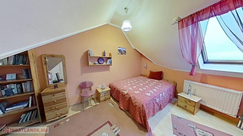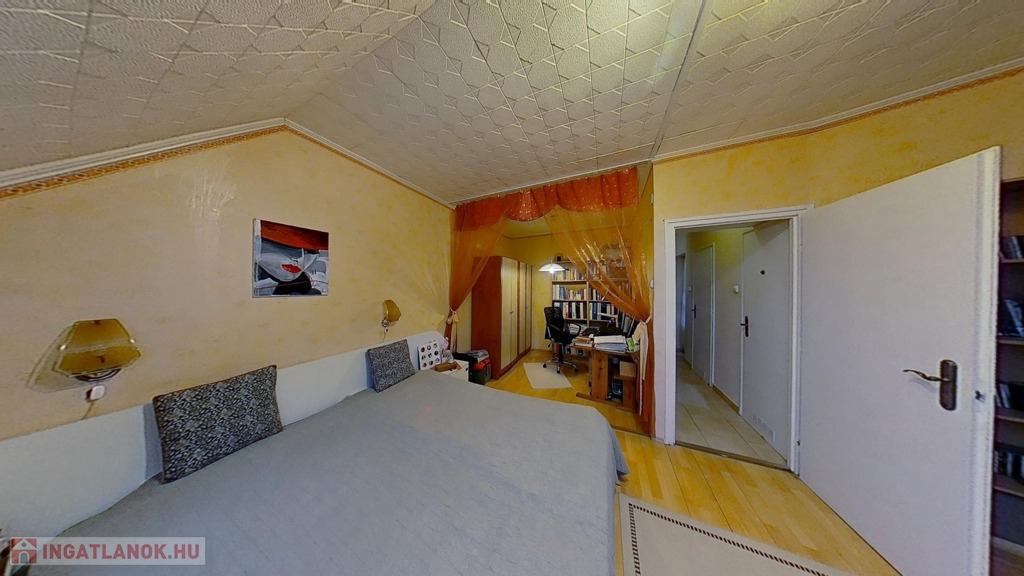 Felső szintje 31 m2, mely egy teljes értékű szobát, félszobát, fürdőt és gardróbot foglal magába.