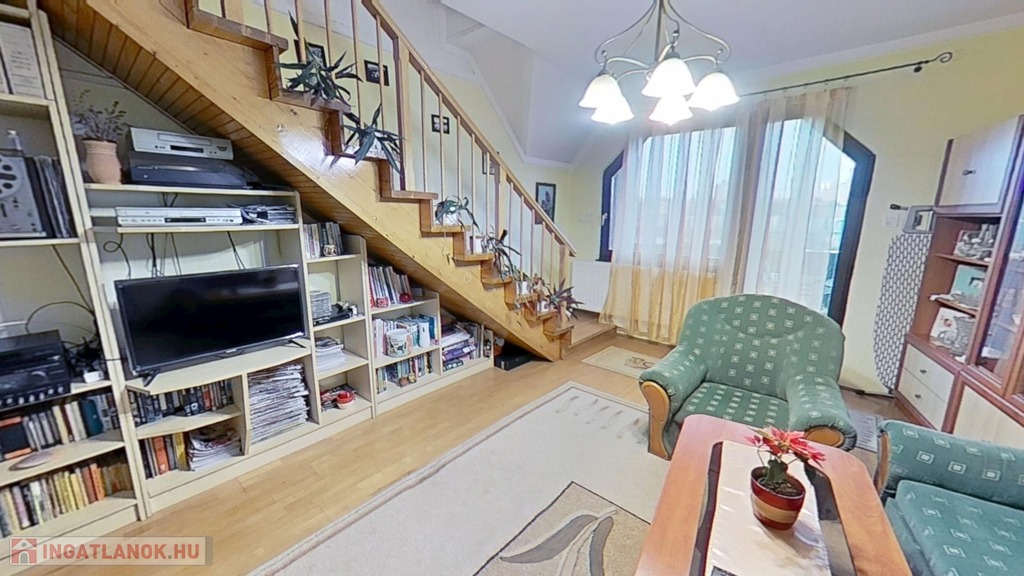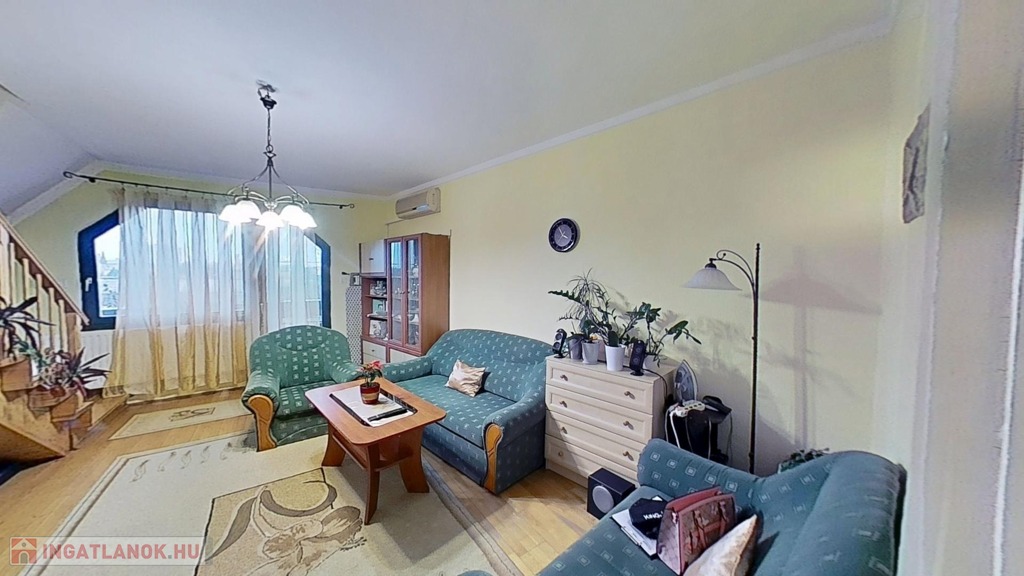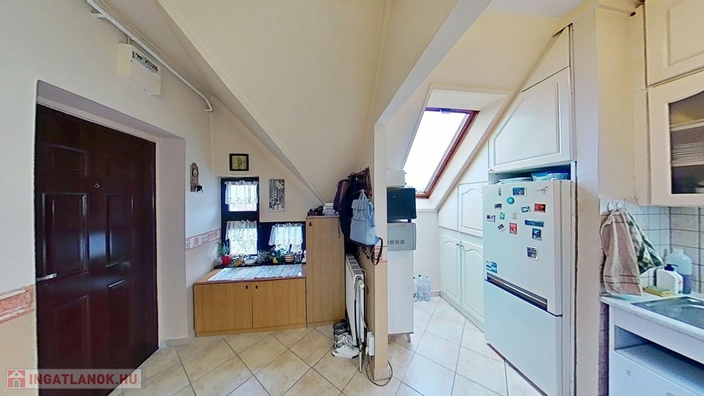 Veszprém megyében, a Csillag utcában ELADÓ 103 m2-es, belső kétszintes, tetőtéri, 3 + 2 fél szobás , kitűnő állapotú tégla lakás egy 1991-ben átadott, lift nélküli, 28 lakásos társasház 3. emeletén.