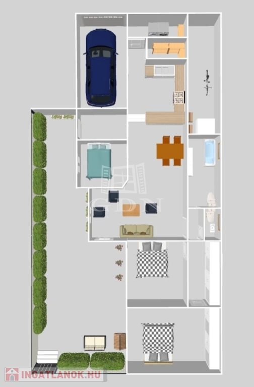 96 nm | 2+2 félszoba | földszint | déli tájolás