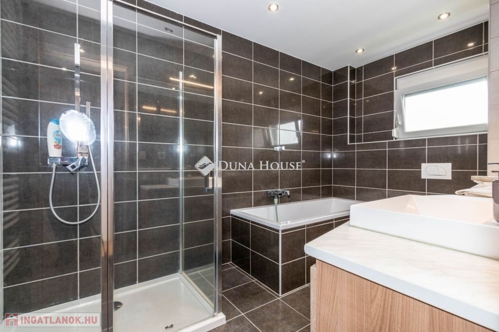 Eladó egy luxus kategóriájú téglaépítésű penthouse Zalaegerszegen. Az ingatlan 2017-ben épült, kivételes minőségben és stílusban, amely nem csak kényelmet, de egyedülálló panorámás kilátást is biztosít jövendőbeli tulajdonosának.Lokációja kitűnő, központi elhelyezkedésű, így a városi élet szolgáltatásai könnyen elérhetőek, legyen szó bevásárlásról, kulturális eseményekről vagy bármilyen más tevékenységről. Az ingatlanba beérve az alsó szinten található az előszoba, fürdőszoba külön WC helyiséggel, gardrób és egy tágas szoba külön erkéllyel. Felső szintre felérve található a tágas nappali, konyha, dolgozószoba, fürdőszoba, hálószoba.A lakás sajátossága a hatalmas terasz, amelyről lenyűgöző panoráma tárul elénk, így a reggeli kávézások vagy baráti összejövetelek új dimenziót nyerhetnek. Az otthon nem csak szemet gyönyörködtető, de praktikus is: a modern, 3 rétegű nyílászárók gondoskodnak a hőszigetelésről és a zajszint minimalizálásáról, így biztosítva a zavartalan pihenést. Az igazi luxusérzetet pedig a lakáshoz tartozó jakuzzi teszi teljessé, amely tökéletes kikapcsolódást nyújt a hosszú napok után.A lakáshoz vásárolható egy garázs elektromos kapuval, ára 13,5 millió Ft áron.Az ingatlanhoz tartozó bútorok további 20 millió Ft összegért megvásárolható.