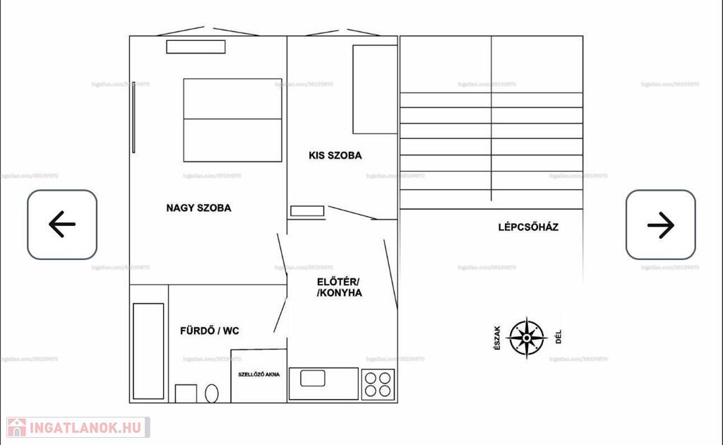 Emeleti elhelyezkedés: Emeleten Emelet száma: 3 Épület emeleteinek száma: 4 Állapota: Használt - felújított Komfort besorolása: Komfortos Építési éve: 1956 Alapterülete: 39 m2 Szobák száma: 2szoba Felújított: Felújított Vízellátás: Vezetékes víz Fűtés módja: Gáz Fűtés típusa: Konvektoros Homlokzat állapot: átlagos Építési mód: Tégla Napelem: Van Energetikai besorolás: Nincs adat